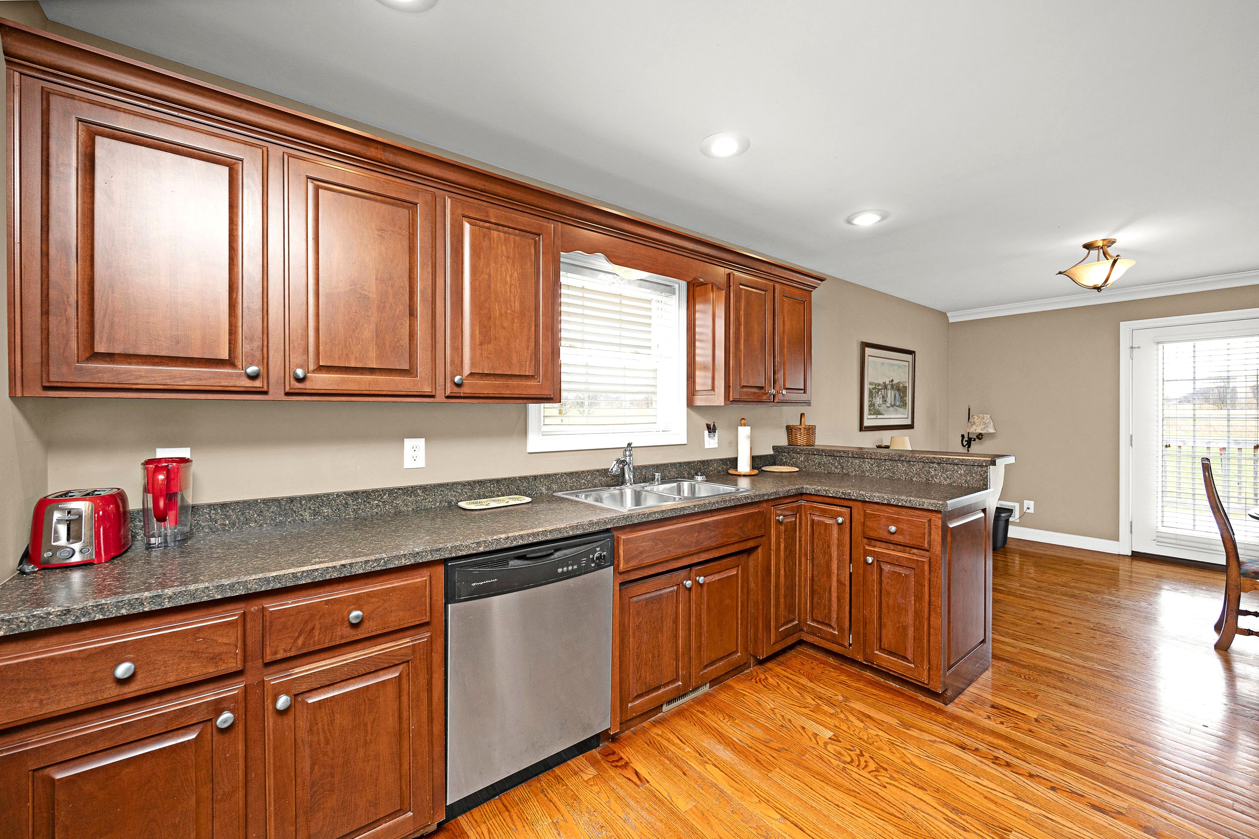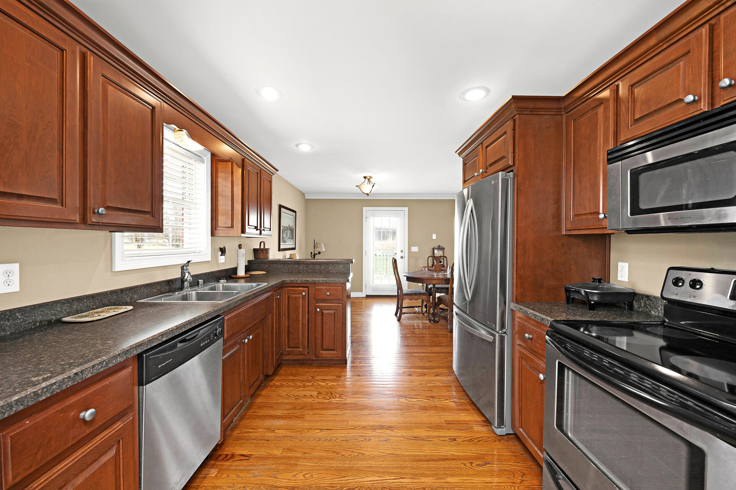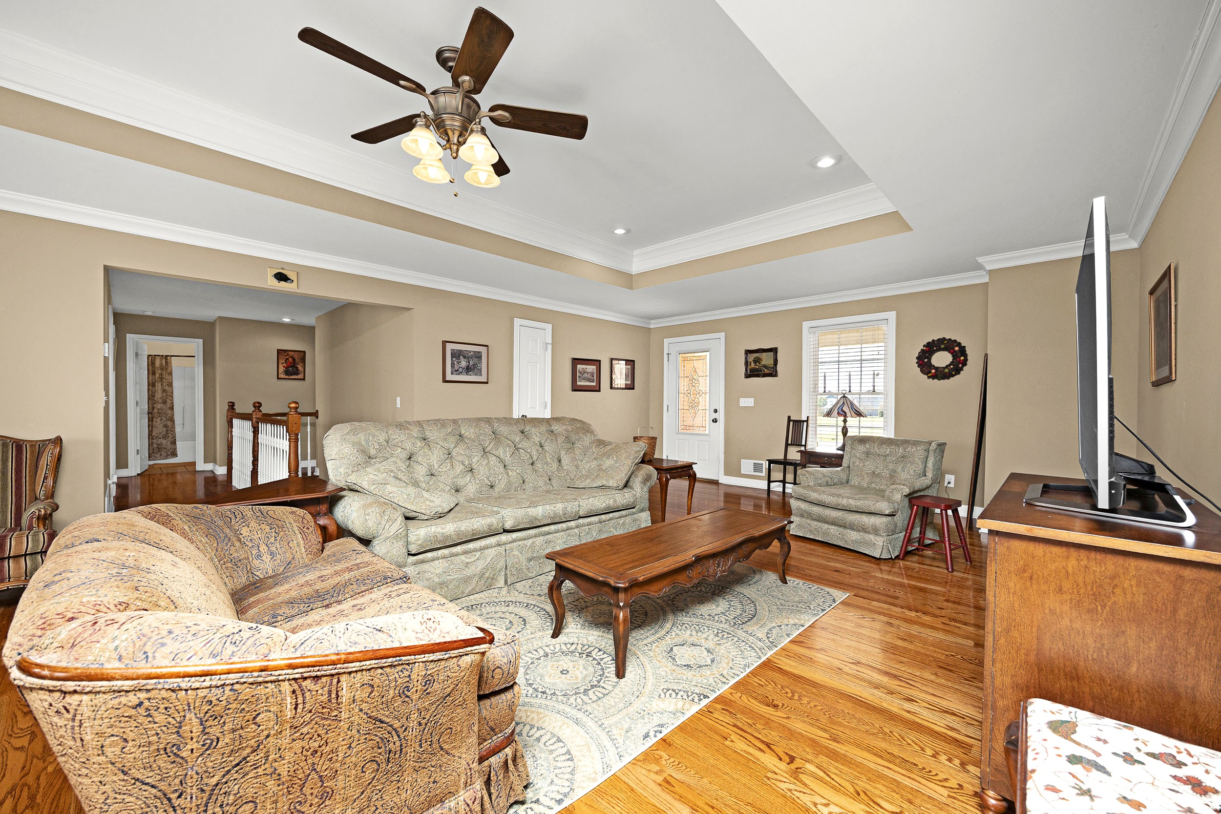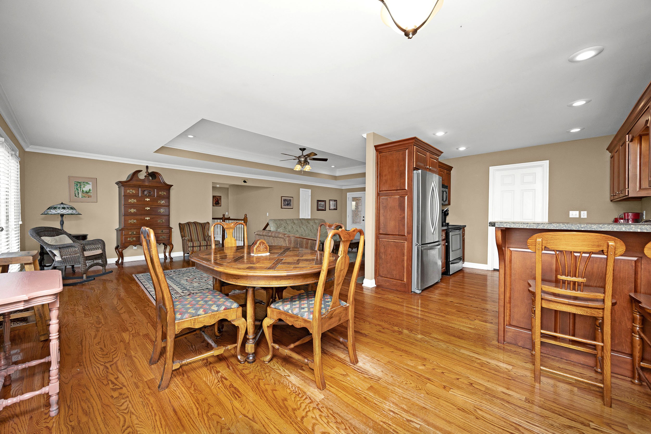 Nestled in the beautiful and peaceful Woodlawn Springs Subdivision is where you will find this magnificent home kept in pristine condition and ready to be yours today! Come on in to be welcomed by an airy living room showcasing a glowing hardwood floor and decorative tray ceiling enhanced with elegant crown molding and a tetrad of recessed lights. Flowing from the living room is a splendid kitchen souped-up with rich-colored cabinetry and equipped with sleek silver handles for an elevated touch while the smooth laminate countertops wrap into an adorable breakfast bar. Then don’t forget about the stainless-steel appliances! Next to the kitchen is a sizable laundry room furnished with lots of handy cabinetry and as an added bonus… the washer and dryer stay too! Rounding out the kitchen is an intimate dining area with a tranquil view of the backyard. Featured on the first-floor is a darling primary suite with a vaulted ceiling for that extra roomy feel while the trio of sun-enticing windows filter soothing natural light into the room and are accentuated by gorgeous stained-glass transoms. The primary suite is also furnished with a large walk-in closet and a private ensuite bath complete with a classy vanity and relaxing whirlpool tub/shower combo. Finishing up the first-floor are 2 more generously sized bedrooms accompanied by another cute full bath with matching qualities as the ensuite. The tour continues down to the basement where you will find a spacious entertainment area with room left over for a library or home office. The basement also has another bedroom and full bath highlighted by a refreshing walk-in shower. Not to mention the 3 separate storage rooms to provide ample amounts of storage space! Speaking of storage… you will enjoy being able to store your vehicles in the attached 2-car garage. Now on to the outside where you will have your choice between relaxing or entertaining on the expansive rear deck or quaint rear patio… plus the home sits on an extensive 0.53-acre (+/-) lot to offer plenty of room for the kids and pets to play. All that is left is to call CHARLES LANCASTER, JR. to make this house your home today!
