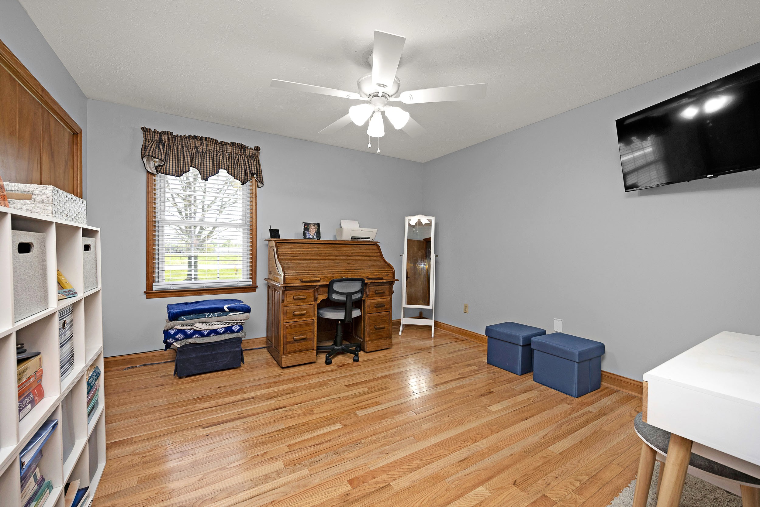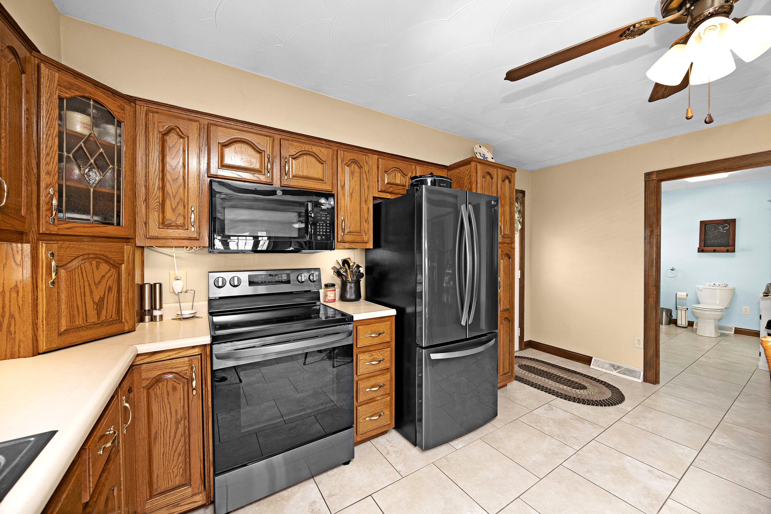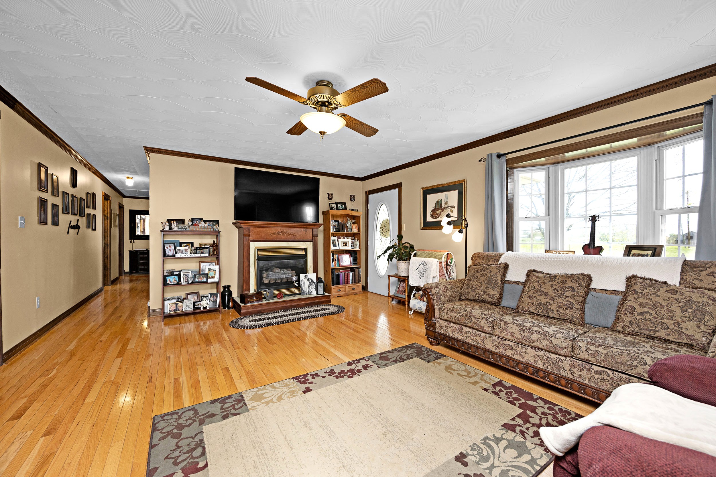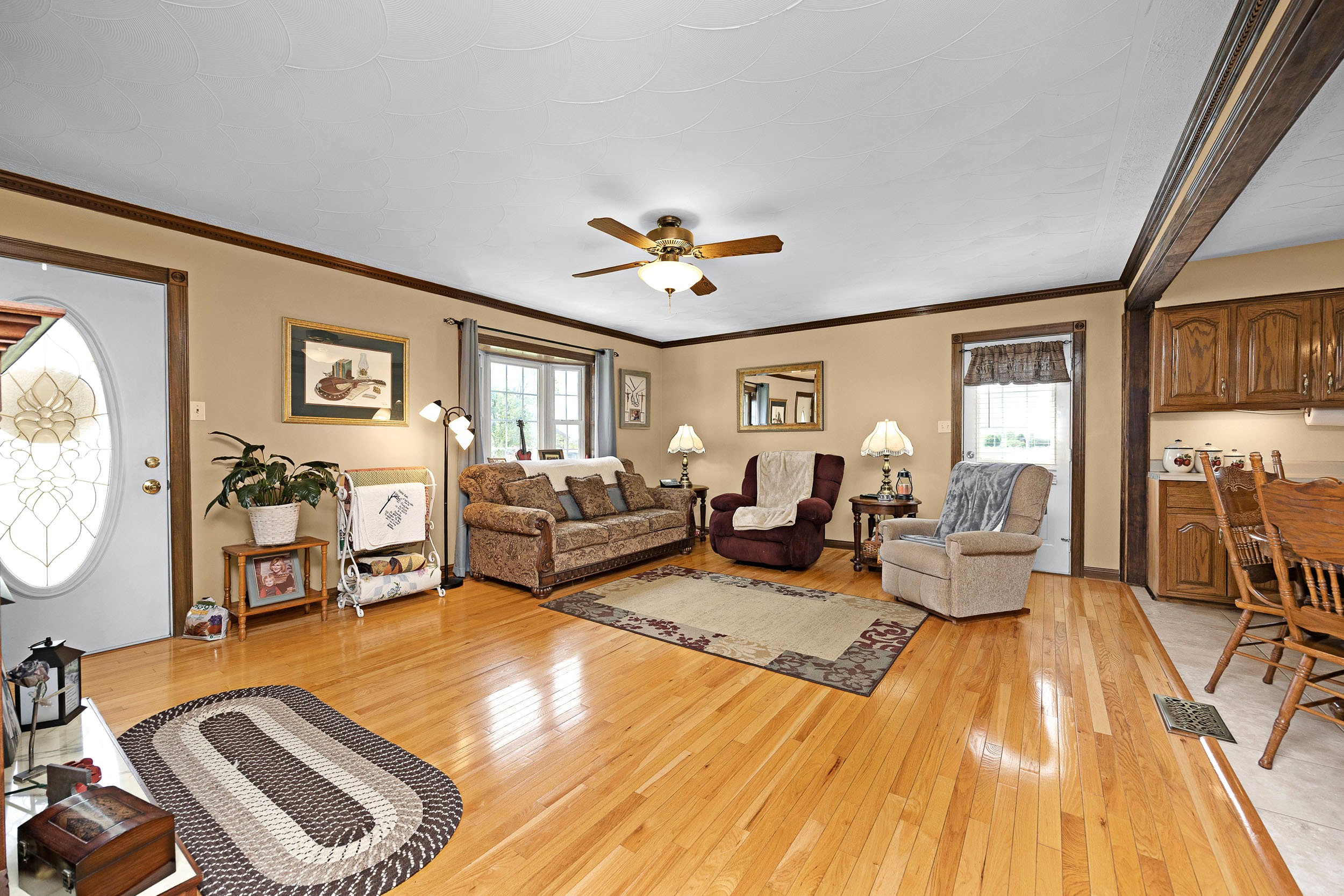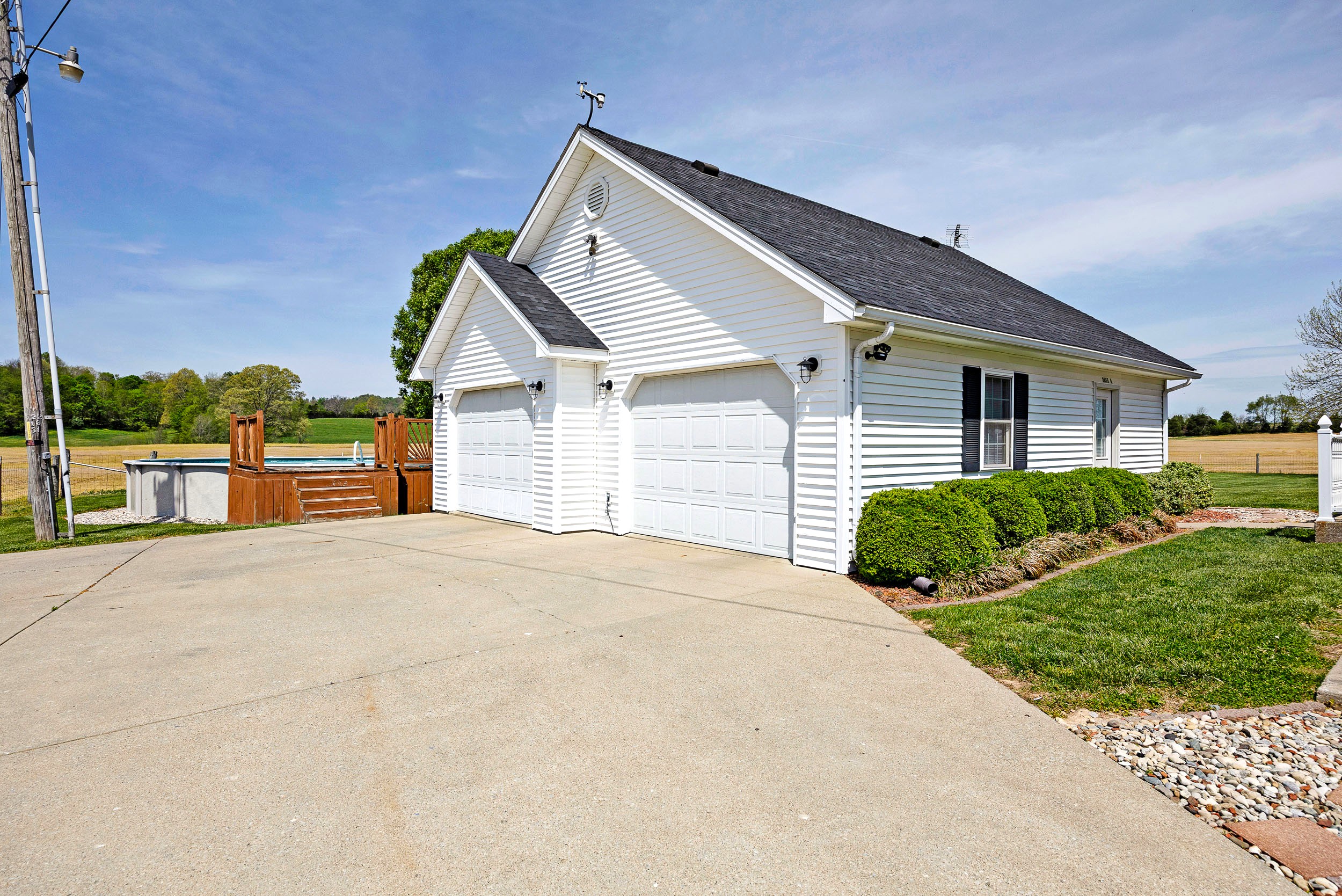 Welcome to this adorable brick ranch with a basement nestled out in the countryside and offering amenities the entire family will enjoy! Come on in to be welcomed by a spacious yet cozy living room showcasing a glowing hardwood floor brightened by a charming bay window. Then the decorative fireplace enhances the cozy ambiance while the ornate crown molding elevates the room. Flowing from the living room is a snazzy kitchen sporting a smooth tile floor and a lovely selection of hearty cabinetry. The kitchen is also equipped with spiffy appliances that include a stainless-steel stove and refrigerator. Then rounding out the kitchen is a quaint dining area. Connected to the kitchen is a convenient utility room featuring a nice ½ bath and a handy storage closet. Making our way down the hall is where you will find 3 generously sized bedrooms highlighted by more of that beautiful hardwood. Accompanying these bedrooms is a full bath complete with a sleek dual vanity, nifty linen closet, and a refreshing tub/shower combo caressed by soothing tile. The tour continues down to the basement where you are greeted by a snuggly den great for gathering around with friends and family. The basement also has another bedroom to give the home a total of 4 bedrooms while also providing additional utility such as that always needed storage space, shelter during inclement weather, and rec areas to have things like a home gym or options for even more fun and entertainment. Outside… it only gets better as the home comes with an awesome detached garage primed to be the ultimate mancave/hangout spot as this garage is climate controlled with a window A/C unit and a wall heater with plenty of room to host and entertain (aka PARTY!) Not to mention… the garage also has a sweet loft providing even more storage space! Companioned next to the garage is a splash of fun with the above-ground pool souped-up with a relaxing sundeck. As we mentioned earlier… the home is nestled out in the country meaning you can enjoy absolutely gorgeous views of the rolling countryside right from your backyard! Speaking of which… you are on a pristine 1.01-acre (+/-) spread of land that gives plenty of space for the kids and pets to play. And don’t forget about the 12’ X 16’ storage shed wired with electric and supplemented with lean-to’s. This place has it all and call BRIANNA GRIBBINS to get it all today!