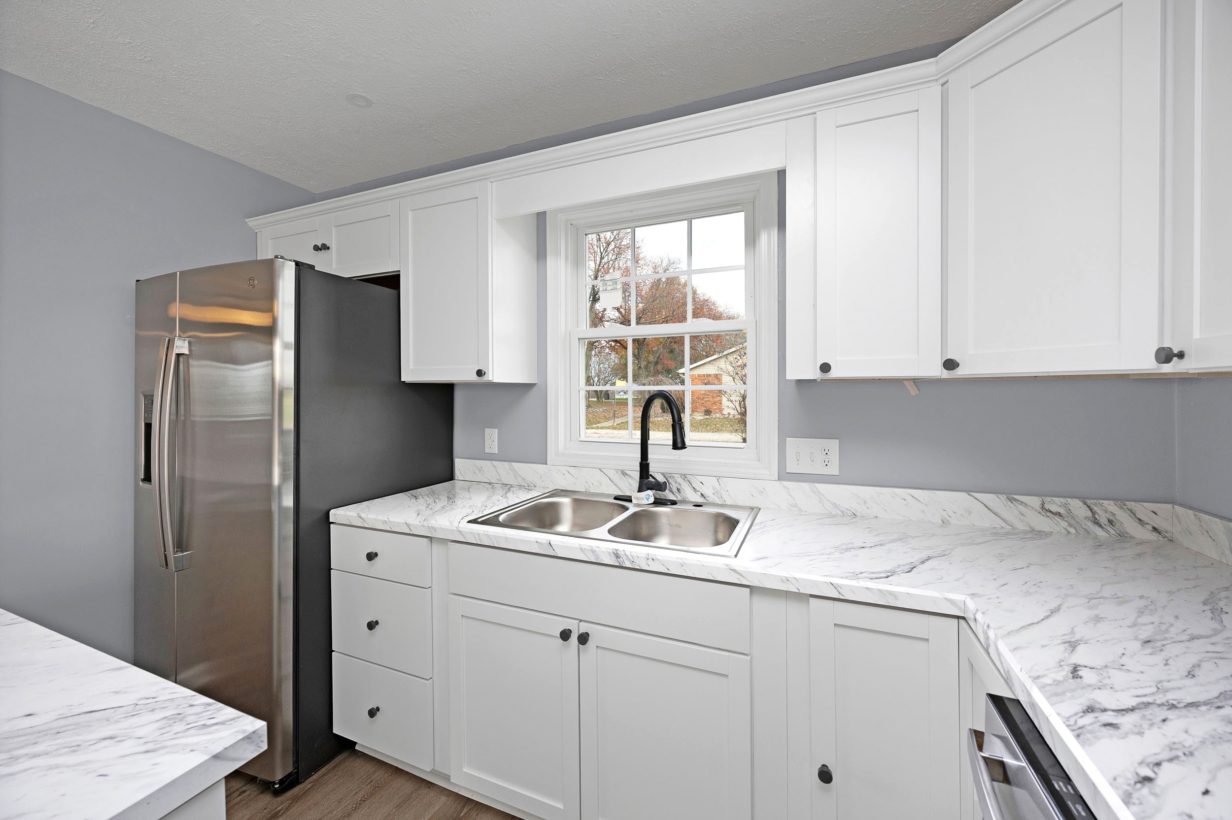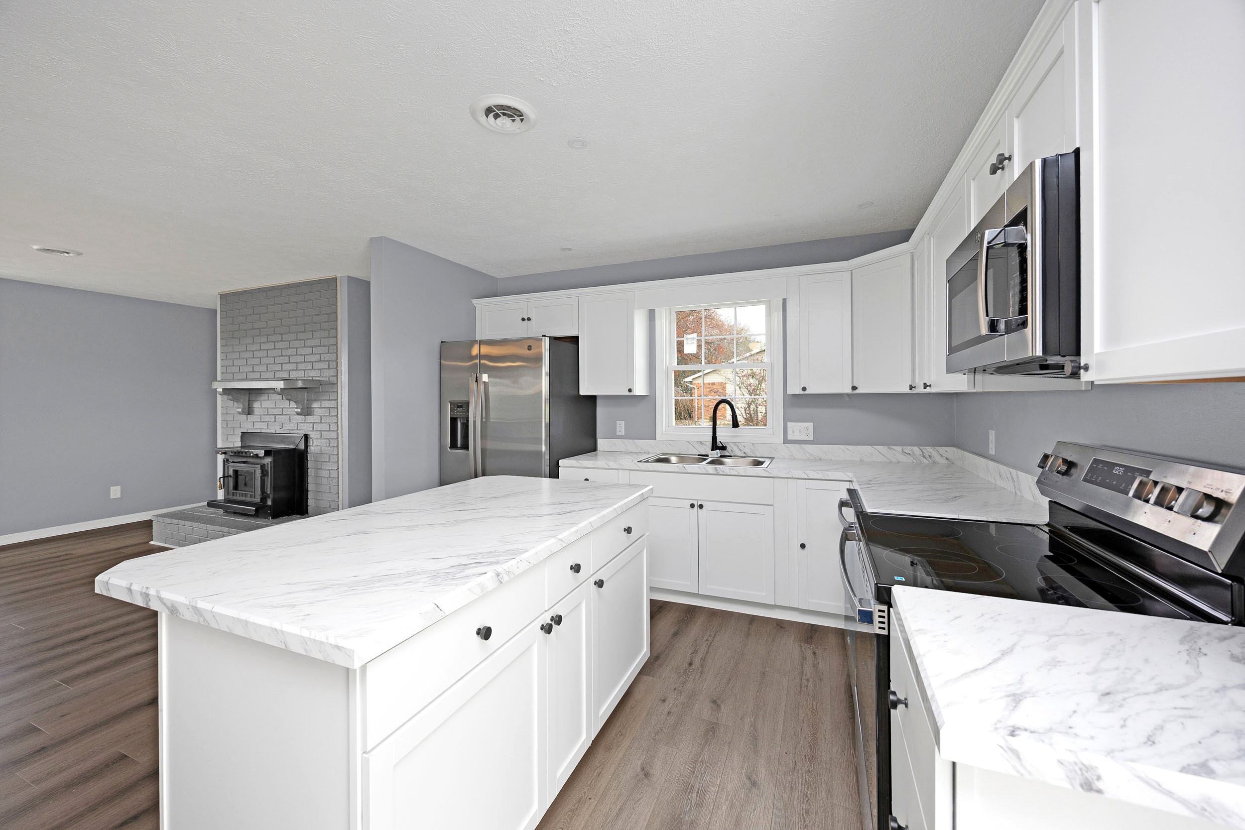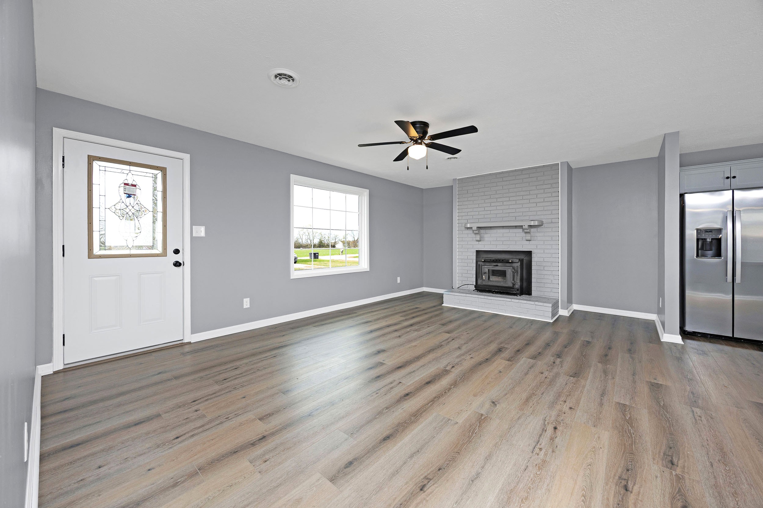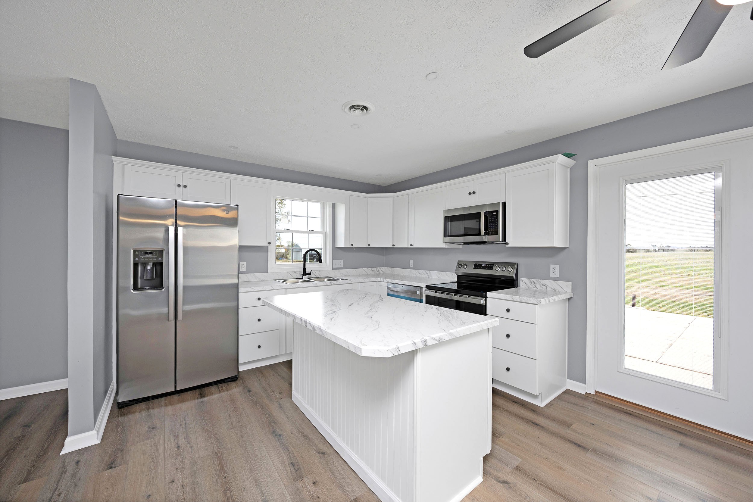 Here is an adorable brick ranch nestled in the quiet countryside of Marion County and completely renovated to make it ready to be called home today! Come on in to be welcomed into a delightful open concept highlighted by a cozy living area featuring a beautiful luxury vinyl plank floor, a picture window offering a gorgeous view of the countryside, and a brick hearth complete with a woodstove and decorative mantle to give you the perfect spot to put the big-screen tv. Flowing from the living room is a lovely kitchen sporting marble print countertops accompanied by a spiffy island. The kitchen is also equipped with a decadent assortment of elegant white cabinetry with contrasting black handles for a tasteful pop! And don’t forget about the matching stainless-steel GE appliances (refrigerator, dishwasher, stove, and microwave). Rounding out the kitchen is a quaint dining area and next to the kitchen is a convenient utility room & ½ bath furnished with a cute vanity. Situated on its own wing of the home are 3 generously sized bedrooms laid with plush carpet and servicing these bedrooms is a full bath showcasing a stylish vanity, handy linen closet, and a nice tub/shower combo. Outside… you will love to hangout on the enormous rear patio that offers a relaxing view of rolling farmland, and as an added bonus… there is a 16X12 outbuilding that is teeming with potential as a workshop or mancave! Call BRIANNA GRIBBINS for all the details on your new home today!