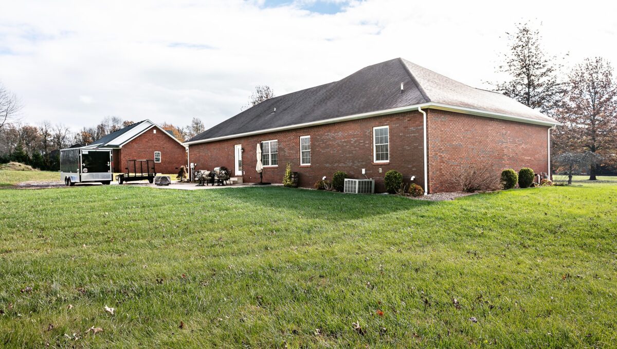 Welcome home to this gorgeous brick ranch with a finished basement that is nestled on a quiet street in the beautiful Damar Subdivision. The tour starts off in the spacious yet cozy living room showcasing a stunning hardwood floor shining under a tetrad of recessed lights. The enchanting fire insert enhances the cozy ambiance while the vaulted tray ceiling fosters that extra roomy feel to be able to host comfortably. Flowing from the living room is the kitchen. This open kitchen is furnished with a good amount of counter space and equipped with sleek stainless-steel appliances while sporting a plethora of sumptuous cabinetry. Rounding out the kitchen is a sizable dining area centered by an elegant light fixture and caressed with a wainscoting wall for a charming touch and next to the kitchen is a conveniently located laundry room. The first-floor features a lavish primary suite complete with a decorative tray ceiling, 3 large closets, and an ensuite bathroom. The ensuite bath spotlights a fashionable vanity then have your choice between getting refreshed in the walk-in shower or relaxing in the whirlpool tub. The first-level hosts 2 more generously sized bedrooms that are serviced by another full bathroom showing off more classy tones similar to the primary. The tour continues to the basement which is the ultimate hangout spot! The star of the show is the den highlighted by the awe-inspiring bar accompanied by a pair of mini fridges and built-ins to display your prized bourbons… plus an area for the big-screen tv making it the perfect spot to watch all the big games. The basement offers much more such as open space for multiple rec areas, handy storage closets, and another full bath… but wait, there’s more! There is another finished room that could be utilized as a 4th bedroom, home office, or workout room with a large closet that doubles as a storm shelter then there is an unfinished room that could easily be finished to make a 5th bedroom or leave it unfinished for a huge storage room. With the cold weather approaching you will appreciate being able to pull the vehicles in the attached 2-car garage. The generously sized lot offers an awesome backyard that looks out into the country while the covered porch and rear patio gives you areas to relax or entertain… and no detail has been overlooked on this home as some extras include a generator plug-in on the side of the home to easily keep the power on when electricity goes out, an RV plug-in to accommodate traveling guests, and a Rinnai tankless water heater to provide hot water on demand! All that is left is to call CHASE LANCASTER for the grand tour of this grand home today!