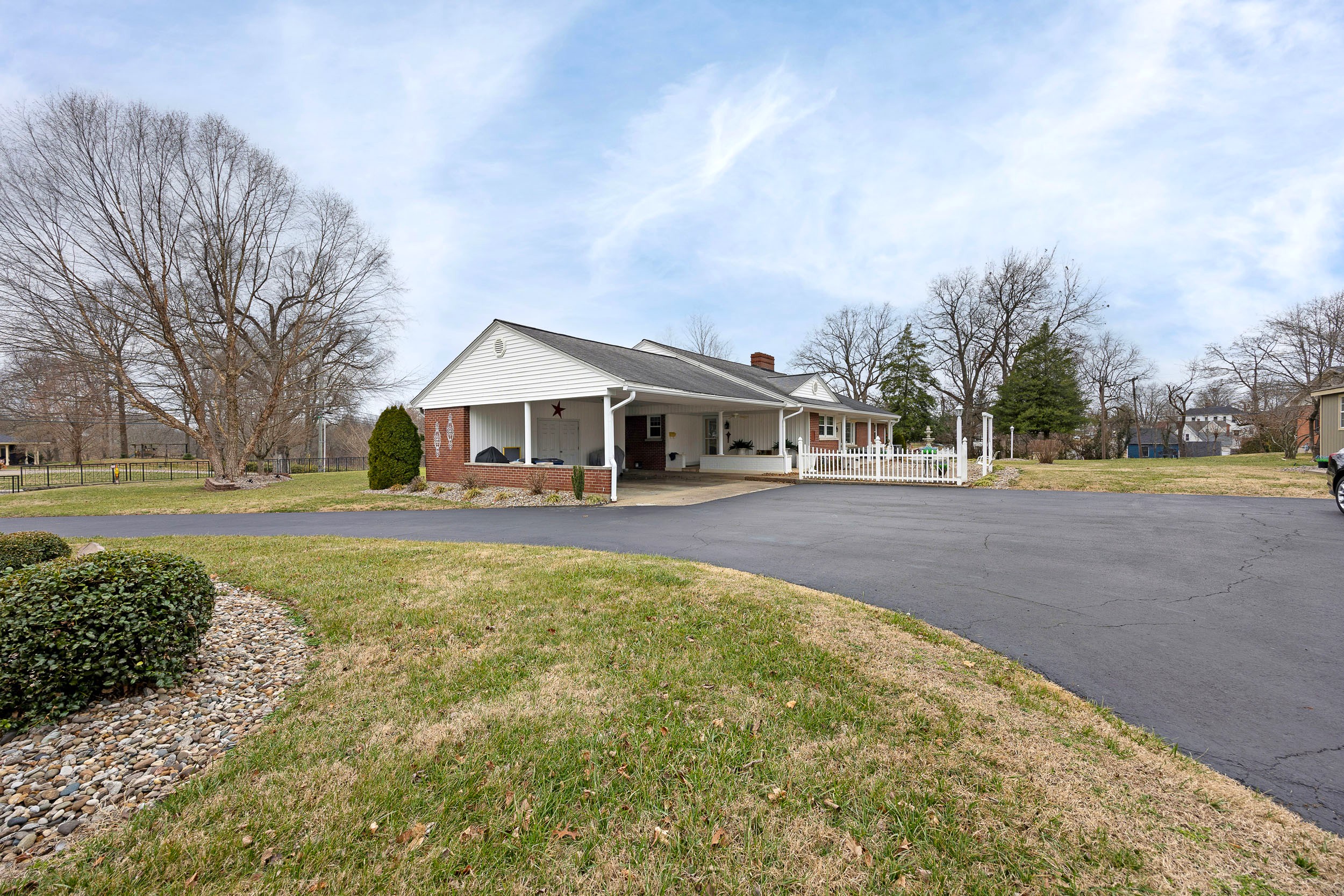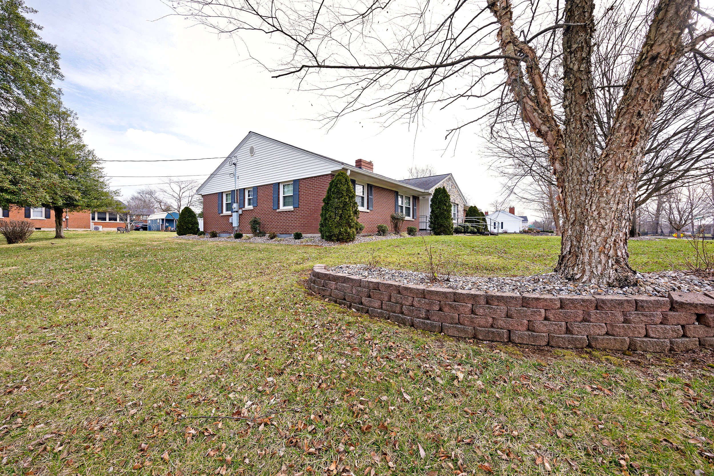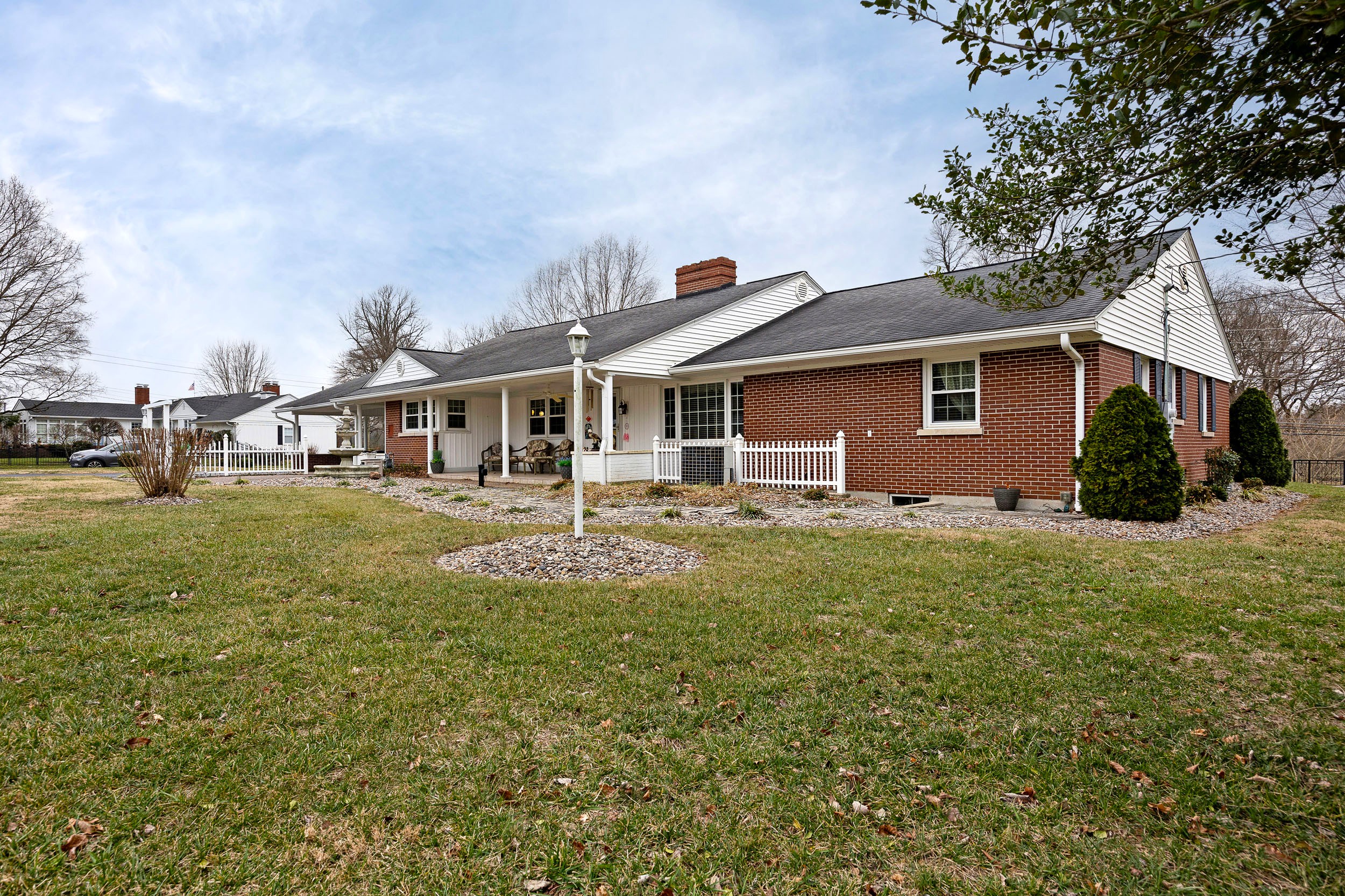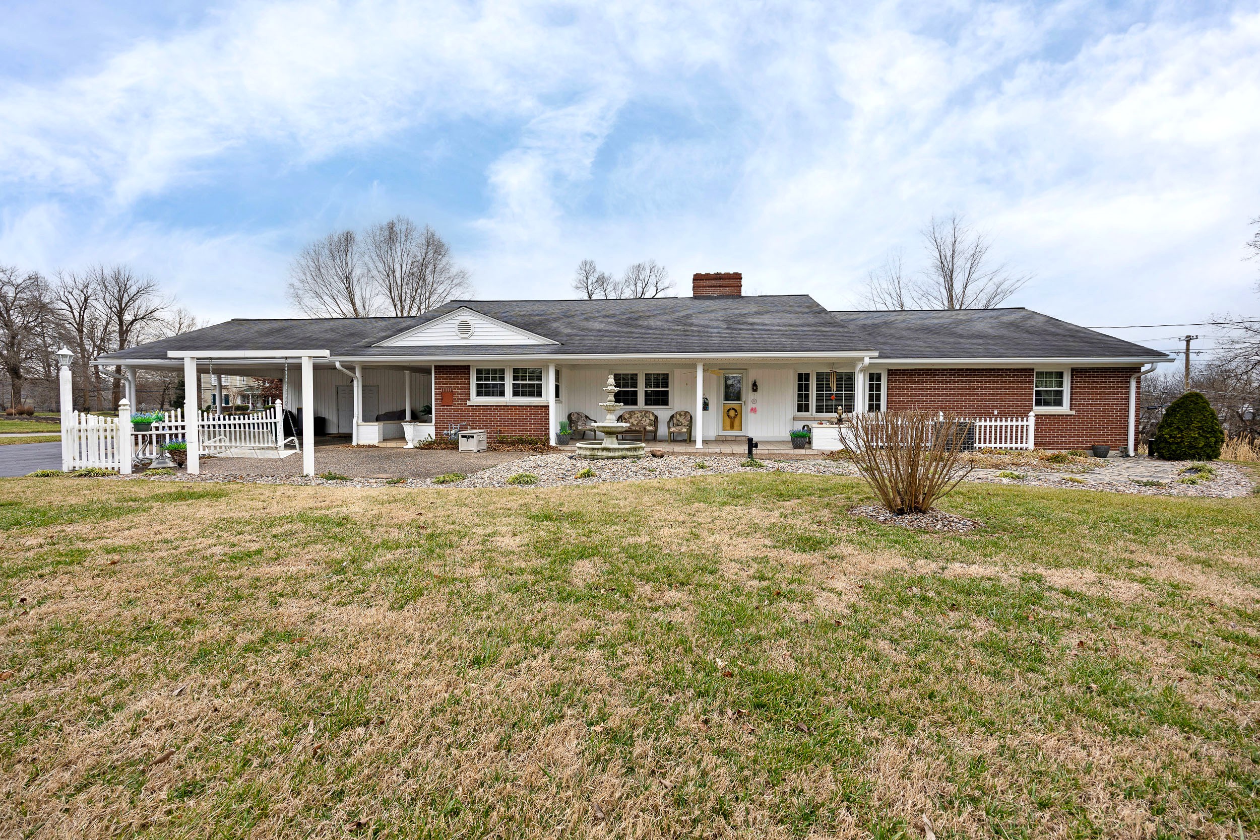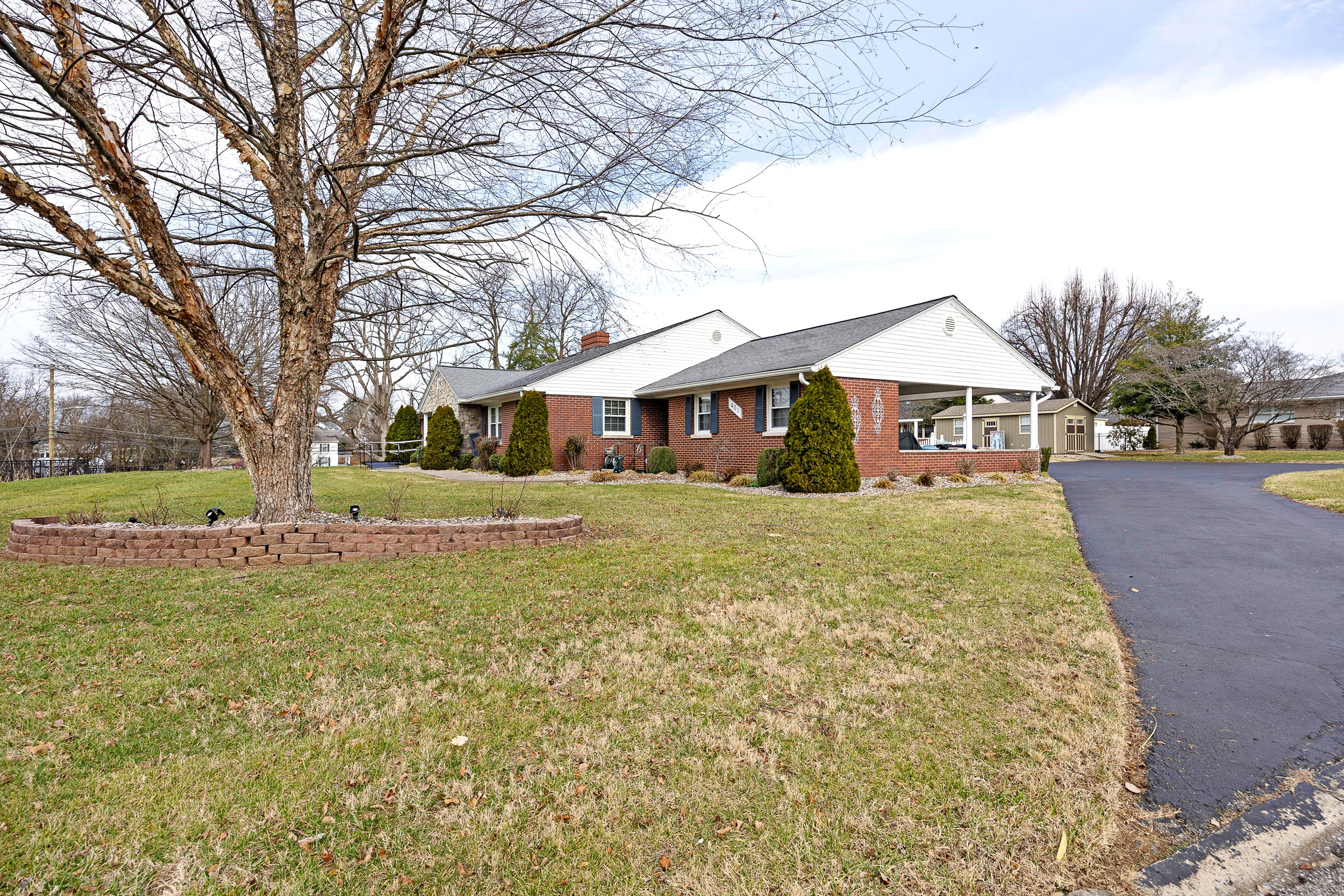 Perched along the illustrious S. Proctor Knott Avenue is where you will find this magnificent brick home w/ stone facing around the front porch and boasting a location second to none as it is nestled next to Graham Memorial Park and all the amenities it has to offer including the Lebanon Aquatic Center, walking track, playground, basketball courts, pickleball courts, tennis courts, baseball & soccer fields, even a driving range, and so much more! Now let’s kick the tour off in the gorgeous kitchen that is equipped with a lovely assortment of custom white cabinetry and an adorable breakfast bar shining under a dashing trio of pendant lights. Flowing from the kitchen is an exquisite den/dining area with a cozy stone fireplace and built-in shelving & cabinetry. Situated back towards the kitchen is a splendid butler’s pantry, a convenient ½ bath, and a sizable laundry room furnished with a handy sink… plus walk-up access to the attic that offers an immense amount of storage space! The first-floor features a spacious primary suite guarded by colonial swinging doors to give it that stately look while showcasing a glowing wood grain floor, robust crown molding, and an elegant fireplace. Rounding out the suite is its own private bath highlighted by a dual vanity, luxurious walk-in shower, and extravagant walk-in closet. Just off the foyer is a dazzling formal dining room that could also be used as a formal living room or a nifty home office. Then follow those enchanting wainscoting walls down the hall where you will find 2 more generously sized bedrooms accompanied by another full bath sporting vintage tilework and a nice tub/shower combo. The tour continues down to the finished, walkup basement where the entire family will love hanging out as it features an awesome entertainment room w/ a brick wood burning fireplace providing both warmth & ambiance, lots of additional storage space, and a full bathroom w/ a ceramic tiled walk-in shower! Outside is like this home is straight from the pages of Southern Living magazine with a lush green lawn spanning to both corners of the Park Heights loop, delightful landscaping & trees all around the entire home, a stone retaining wall at the edge of the front lawn w/ decorative black fencing on top & a quaint 12′ X 24′ building providing even more storage space! You will enjoy taking it easy or entertaining guests on your choice of the ceramic tiled covered side patio, the spacious covered ceramic tiled rear patio, or the open pebbled concrete rear patio…All while enjoying the soothing sounds of the wonderful water fountain! But wait…There’s more…You will also love having the attached double carport to protect your vehicles from the elements! All that’s left is to call IRVIN ABELL for your grand tour of this grand home today!