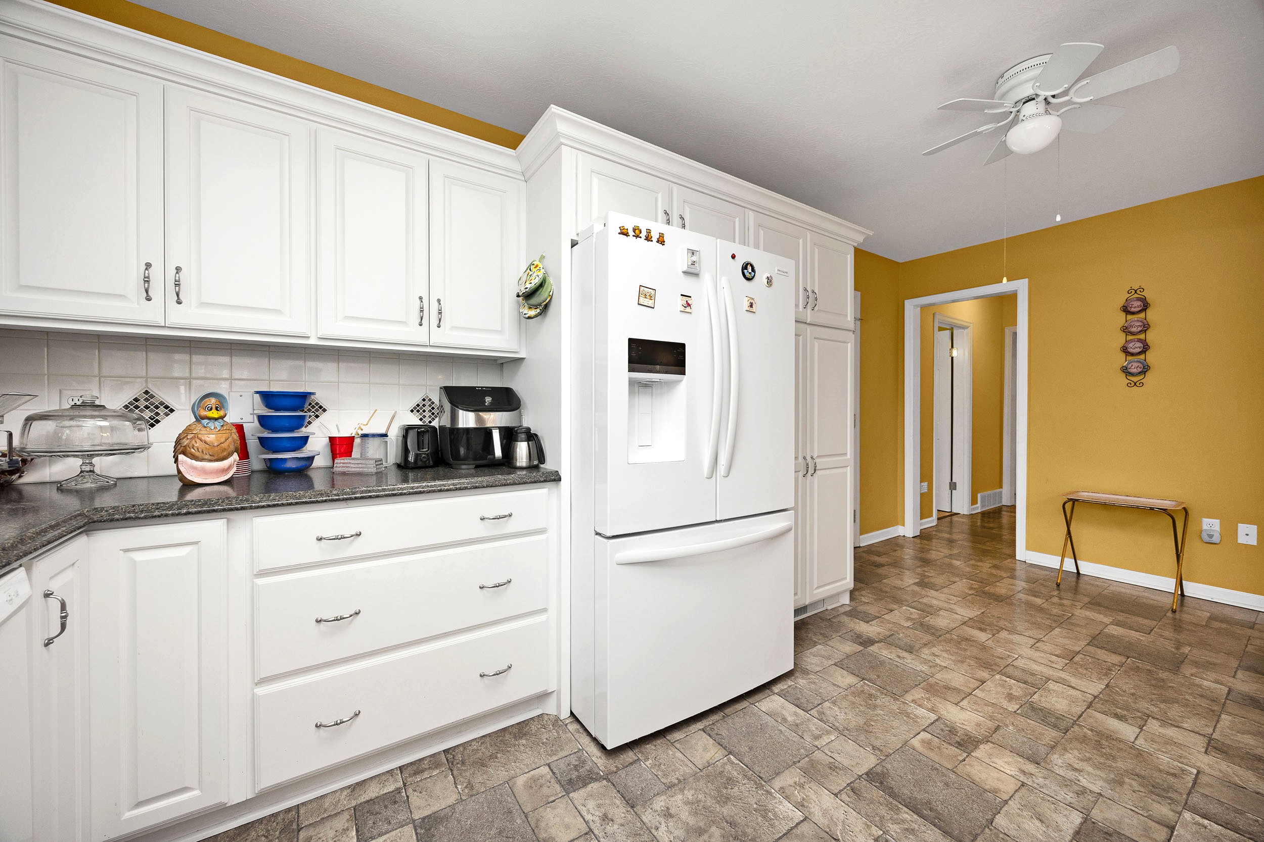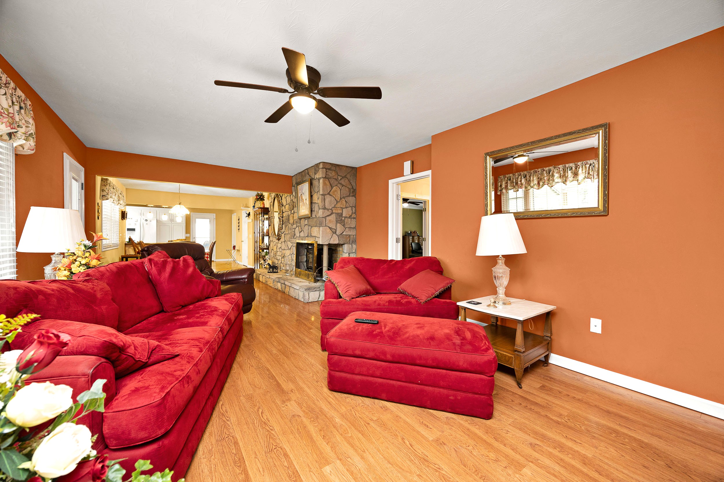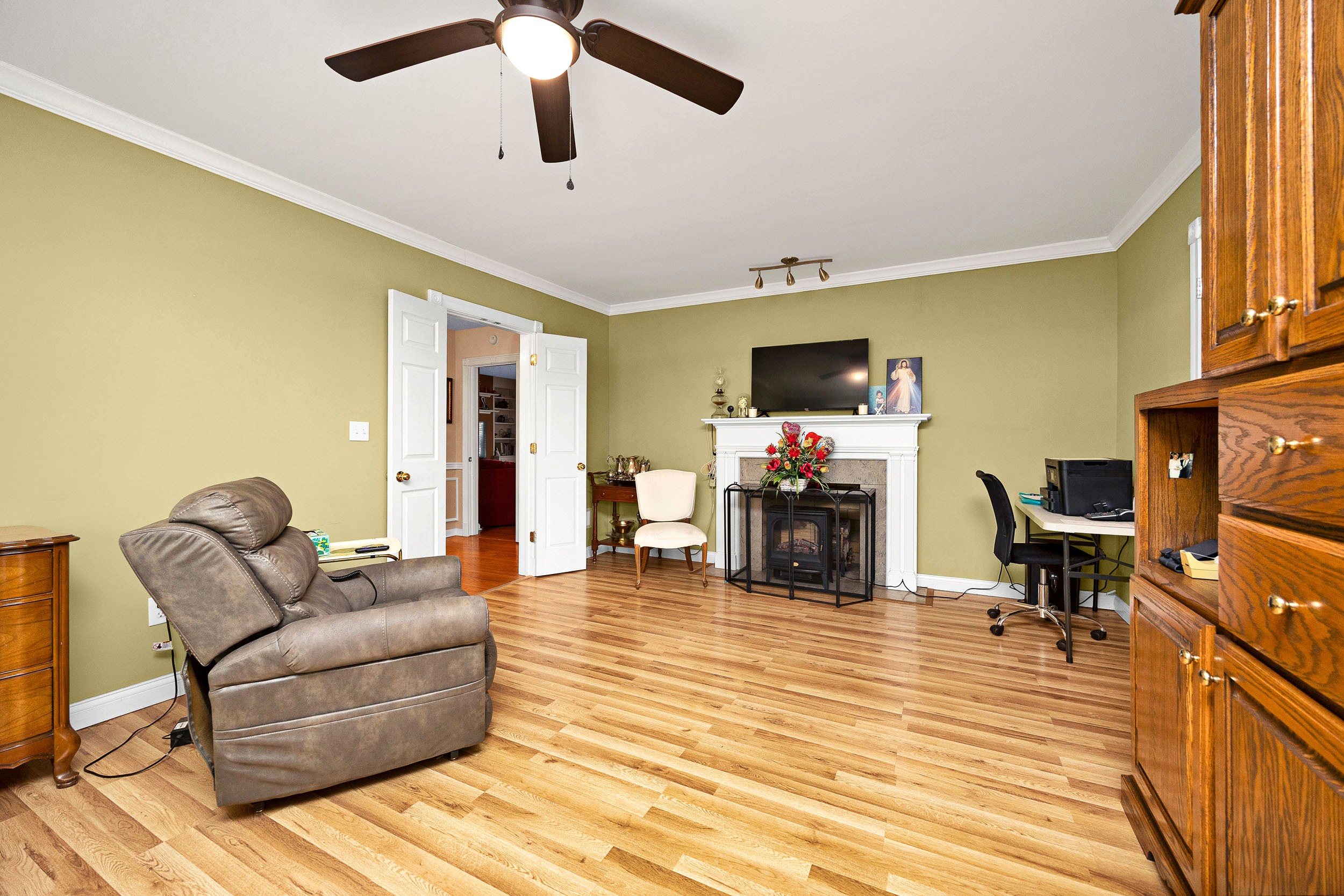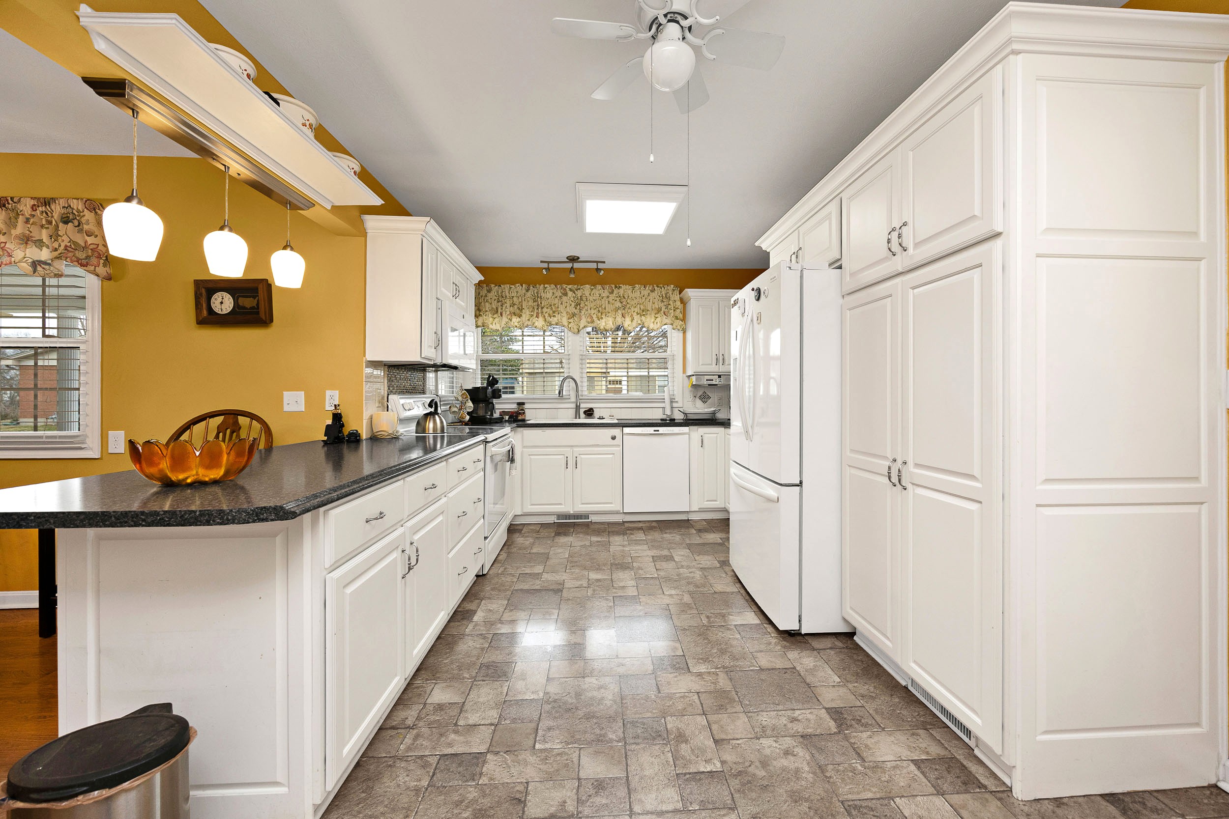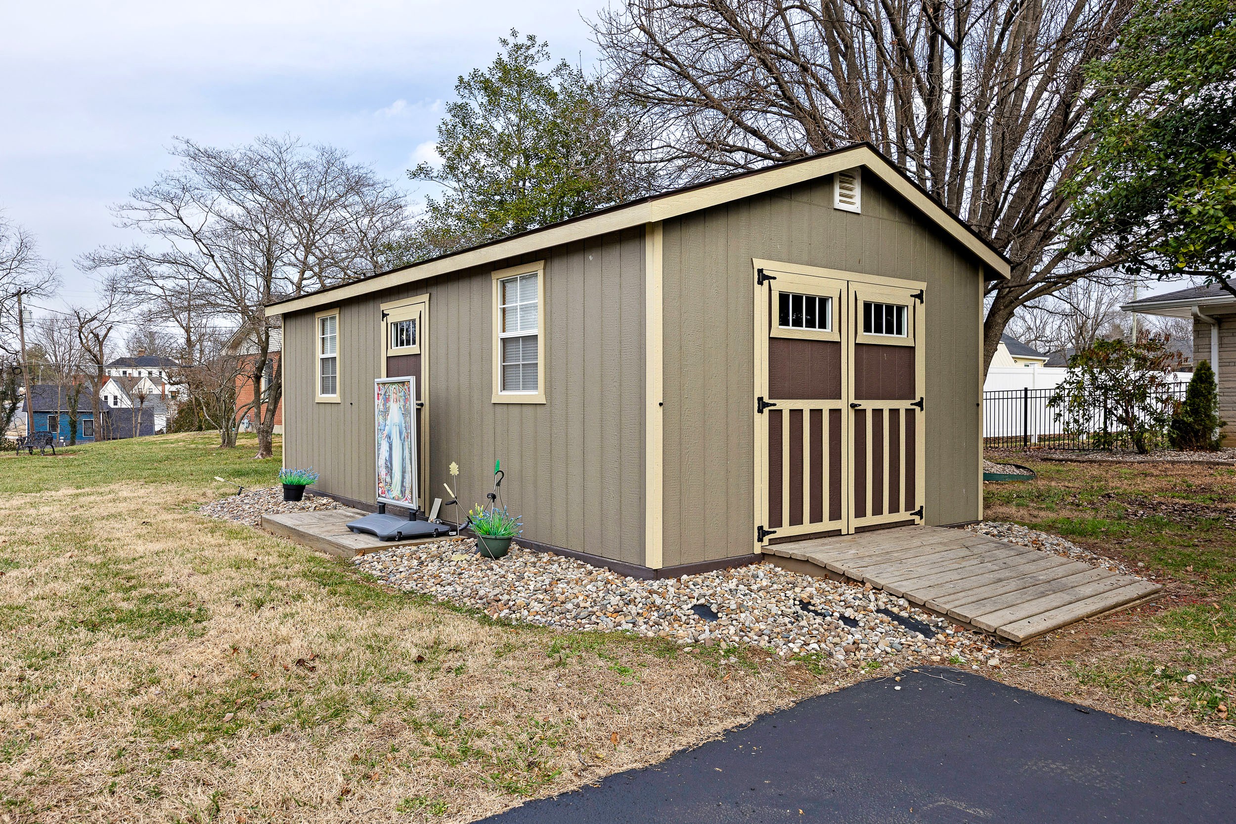 Perched along the illustrious S. Proctor Knott Avenue is where you will find this magnificent brick home w/ stone facing around the front porch and boasting a location second to none as it is nestled next to Graham Memorial Park and all the amenities it has to offer including the Lebanon Aquatic Center, walking track, playground, basketball courts, pickleball courts, tennis courts, baseball & soccer fields, even a driving range, and so much more! Now let’s kick the tour off in the gorgeous kitchen that is equipped with a lovely assortment of custom white cabinetry and an adorable breakfast bar shining under a dashing trio of pendant lights. Flowing from the kitchen is an exquisite den/dining area with a cozy stone fireplace and built-in shelving & cabinetry. Situated back towards the kitchen is a splendid butler’s pantry, a convenient ½ bath, and a sizable laundry room furnished with a handy sink… plus walk-up access to the attic that offers an immense amount of storage space! The first-floor features a spacious primary suite guarded by colonial swinging doors to give it that stately look while showcasing a glowing wood grain floor, robust crown molding, and an elegant fireplace. Rounding out the suite is its own private bath highlighted by a dual vanity, luxurious walk-in shower, and extravagant walk-in closet. Just off the foyer is a dazzling formal dining room that could also be used as a formal living room or a nifty home office. Then follow those enchanting wainscoting walls down the hall where you will find 2 more generously sized bedrooms accompanied by another full bath sporting vintage tilework and a nice tub/shower combo. The tour continues down to the finished, walkup basement where the entire family will love hanging out as it features an awesome entertainment room w/ a brick wood burning fireplace providing both warmth & ambiance, lots of additional storage space, and a full bathroom w/ a ceramic tiled walk-in shower! Outside is like this home is straight from the pages of Southern Living magazine with a lush green lawn spanning to both corners of the Park Heights loop, delightful landscaping & trees all around the entire home, a stone retaining wall at the edge of the front lawn w/ decorative black fencing on top & a quaint 12′ X 24′ building providing even more storage space! You will enjoy taking it easy or entertaining guests on your choice of the ceramic tiled covered side patio, the spacious covered ceramic tiled rear patio, or the open pebbled concrete rear patio…All while enjoying the soothing sounds of the wonderful water fountain! But wait…There’s more…You will also love having the attached double carport to protect your vehicles from the elements! All that’s left is to call IRVIN ABELL for your grand tour of this grand home today!