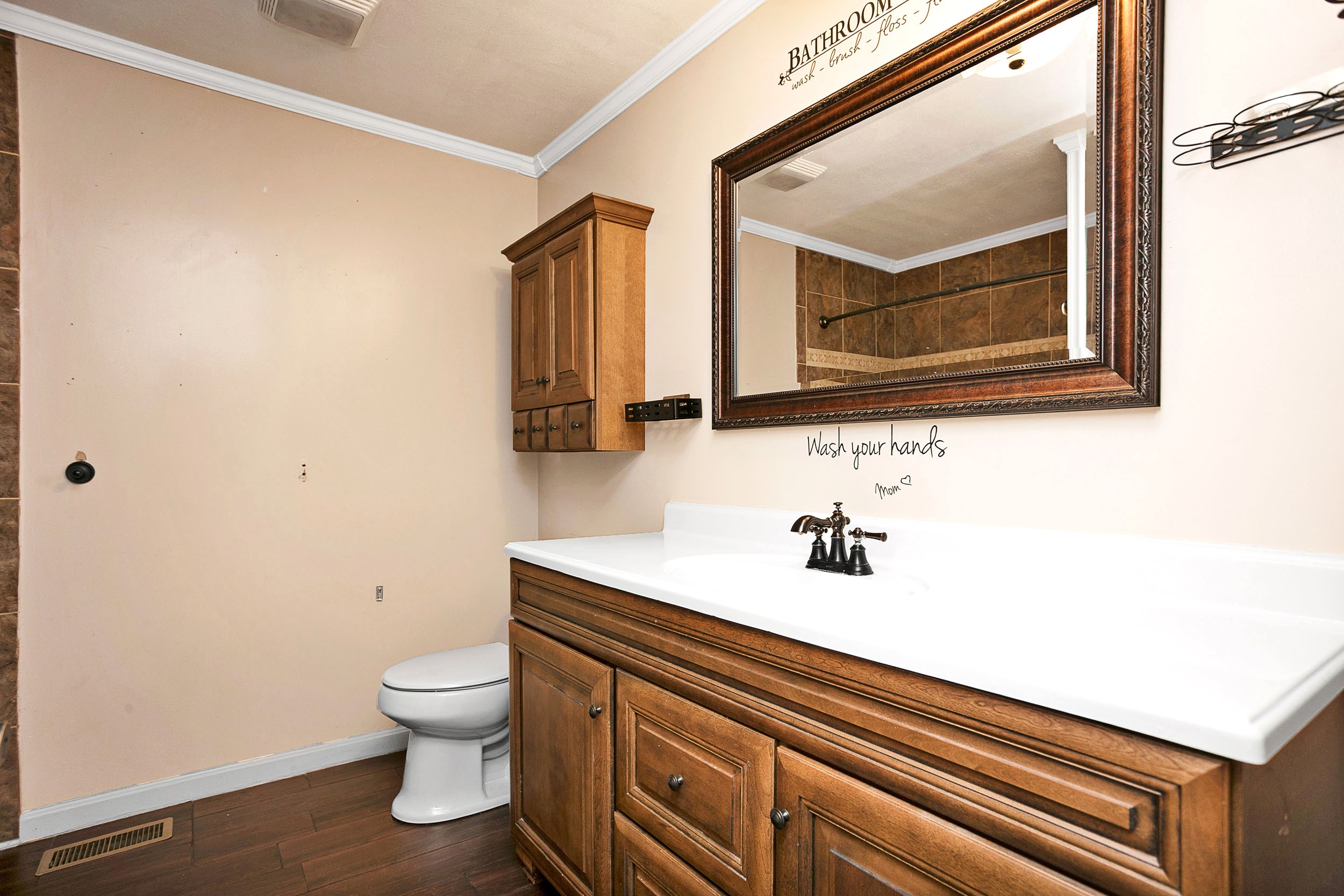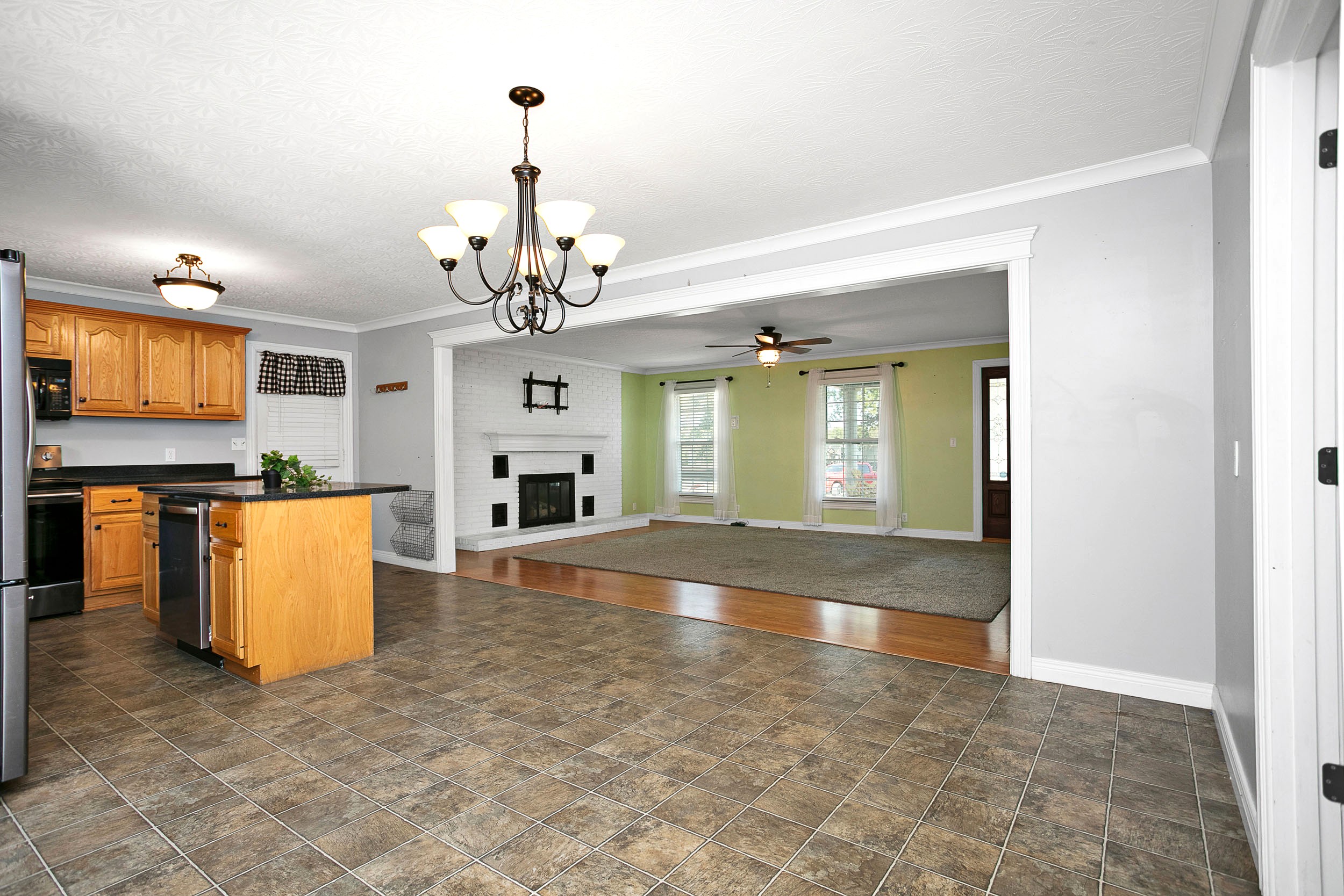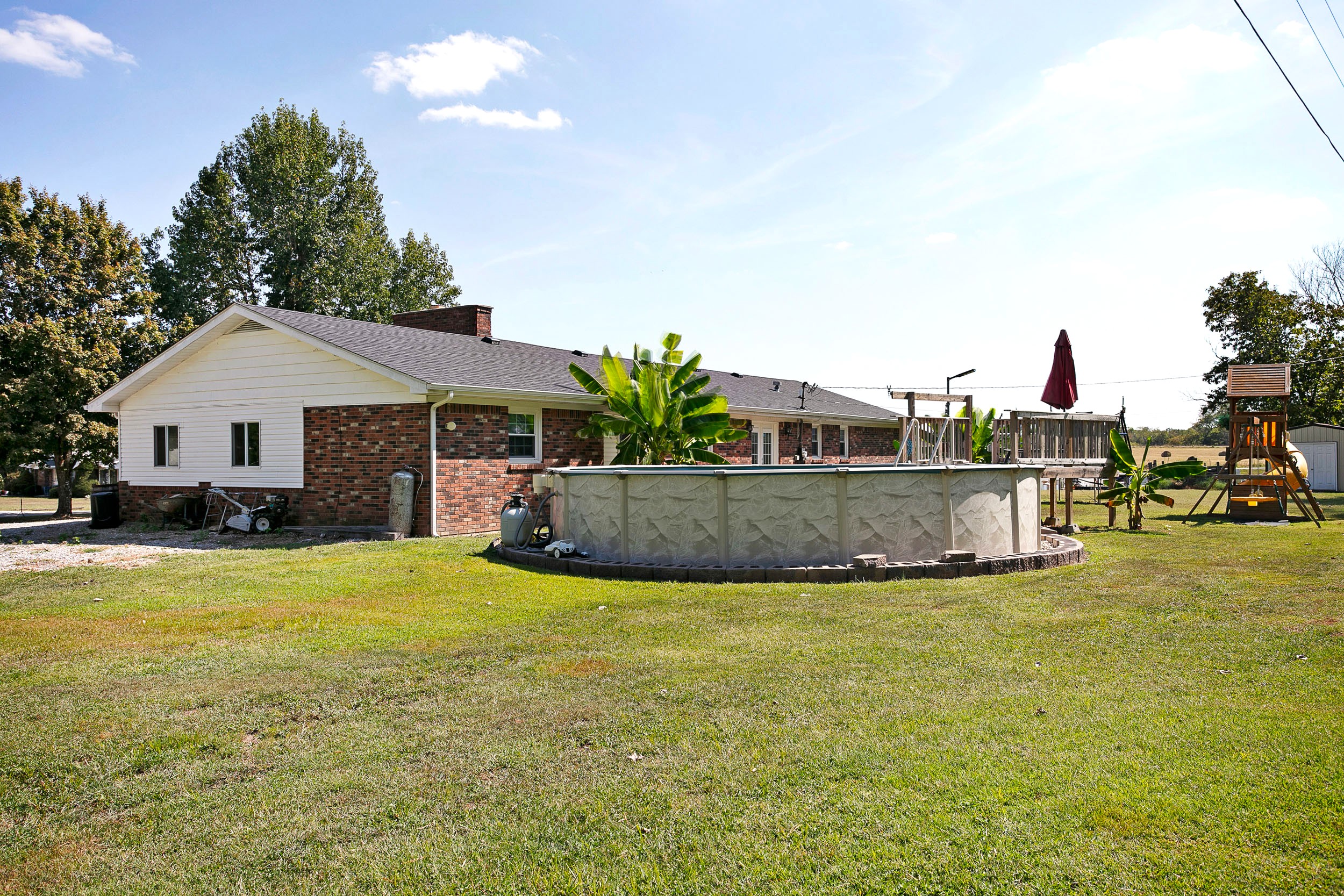 Here is a wonderful brick ranch nestled on the quiet street of Cambron Lane and ready to be enjoyed by the whole family. The tour begins in the spacious living room that is perfect for gathering comfortably with its airy layout. The living room features a duo of sun-enticing windows that shine on the beautiful woodgrain floor. Then also highlighted in the living room is a gas-log fireplace fortified by an impressive brick hearth that is painted white and complemented by a decorative mantle to enhance the cozy ambiance of the room while the robust crown molding adds an elevated touch! Flowing from the living room is a lovely kitchen where you will find more of that classy crown molding. The kitchen is equipped with sleek, black countertops that pair brilliantly with the generous assortment of hearty cabinetry. Centered in the kitchen is an adorable island supplementing cabinet/counter space and rounding out the kitchen is an intimate dining area. Connecting to the kitchen is a conveniently located laundry room offering handy storage space and a full bath that has a nice walk-in shower. Situated on its own wing of the home are 3 large bedrooms including the primary which is furnished with an awesome walk-in closet complete with splendid built-ins. Accompanying these bedrooms is another full bath featuring a smooth floating tile floor, a stylish vanity, and tub/shower combo caressed by ornate tile. Then don’t forget about the attached garage that also houses a workshop to give you a great spot for those tinkering jobs. Making our way outside… you’ll love being able to swing under the covered front porch as you watch the days go by or being able to entertain on the rear patio. Speaking of which… the entertainment is just getting started as you also have an above-ground pool coupled with a sizable sundeck. Not to mention… the home sits on a generous 1.10-acre (+/-) lot to offer plenty of room for kids and pets to play… plus the swing set stays meaning even more fun for the kiddos! Call TREY ABELL to take a stroll down Cambron Lane.