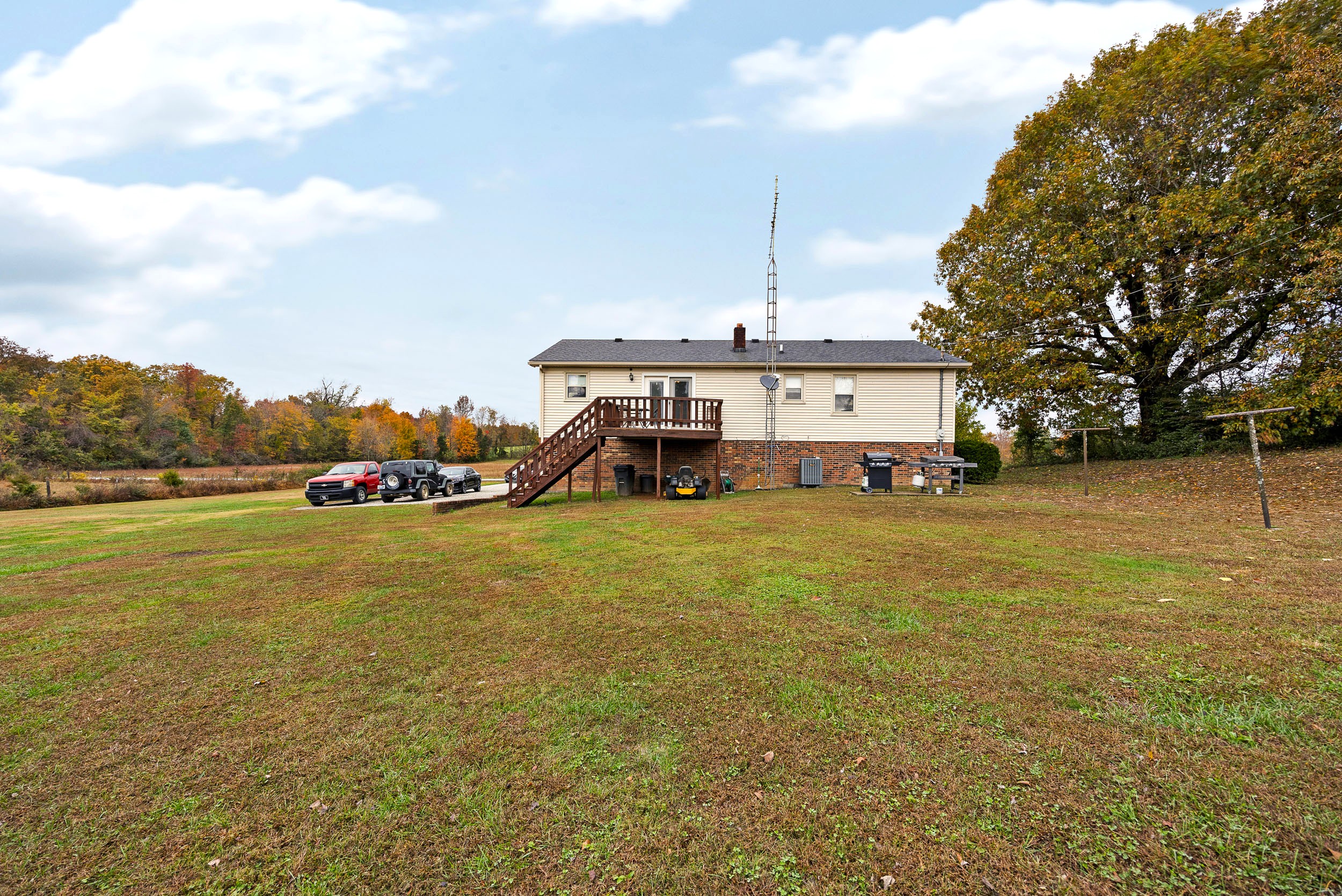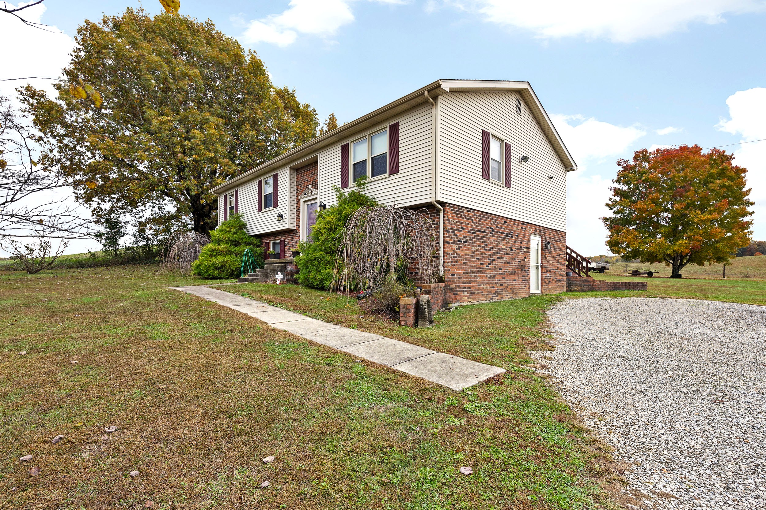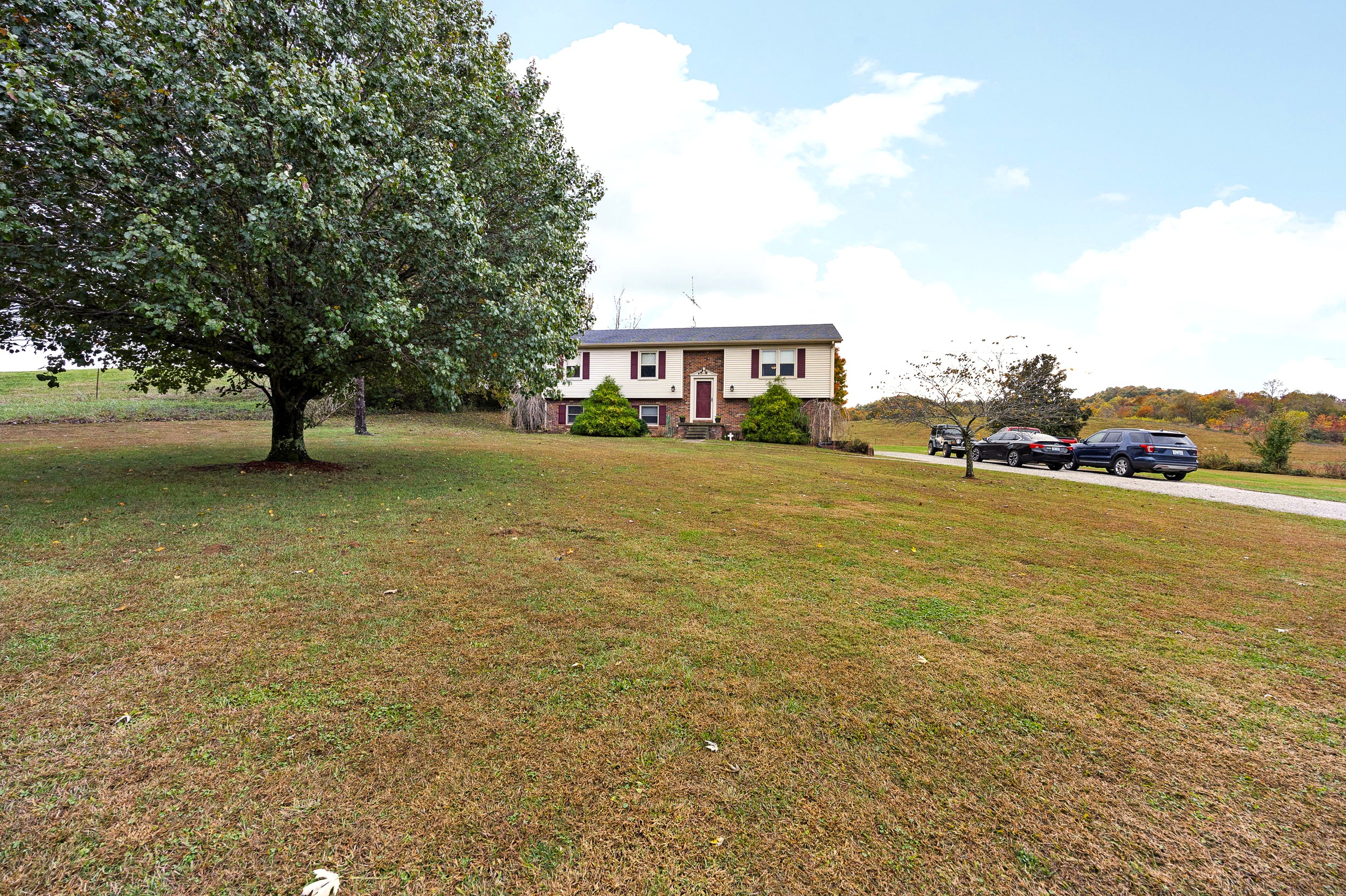 Nestled out in the beautiful countryside of central Kentucky is where you will find this charming bi-level sporting 2,728 Sq. Ft (+/-) of splendid living area ready to be enjoyed by the whole family. Kicking the tour off on the upper-level is a spacious yet cozy living room showing off immaculate trim work and a gleaming wood floor. Flowing from the living room is an adorable kitchen equipped with a lovely assortment of hearty cabinetry and a horseshoe counter that wraps into a delightful breakfast bar. Joining the party are the stainless-steel appliances (refrigerator, dishwasher, stove, and microwave) and rounding out the kitchen is an intimate dining area plus a nifty pantry closet. This level also hosts 3 large bedrooms including a spacious primary furnished with a large walk-in closet and its own ensuite bath that features a refreshing walk-in shower. Accompanying the other 2 bedrooms is another full bath highlighted by an ornate vanity and decorative tilework. Making our way down to the lower level you are greeted by a commodious yet snuggly den that offers as a fantastic rec area! This level also has 2 more generously sized bedrooms (for a total of 5) that could also be used as a home office or gym if you don’t need the extra bedrooms. Finishing up the lower-level is a sizable laundry room and yet another full bath! Then when you just want to sit back and relax… you have the rear deck to do just that as the view of the rolling countryside makes it the perfect spot to unwind and watch the world go by. Not to mention the open backyard giving a fantastic place for kids and pets to play and as an added bonus… you get a serviceable storage building too! Call BRIANNA GRIBBINS to make this house your home today!
