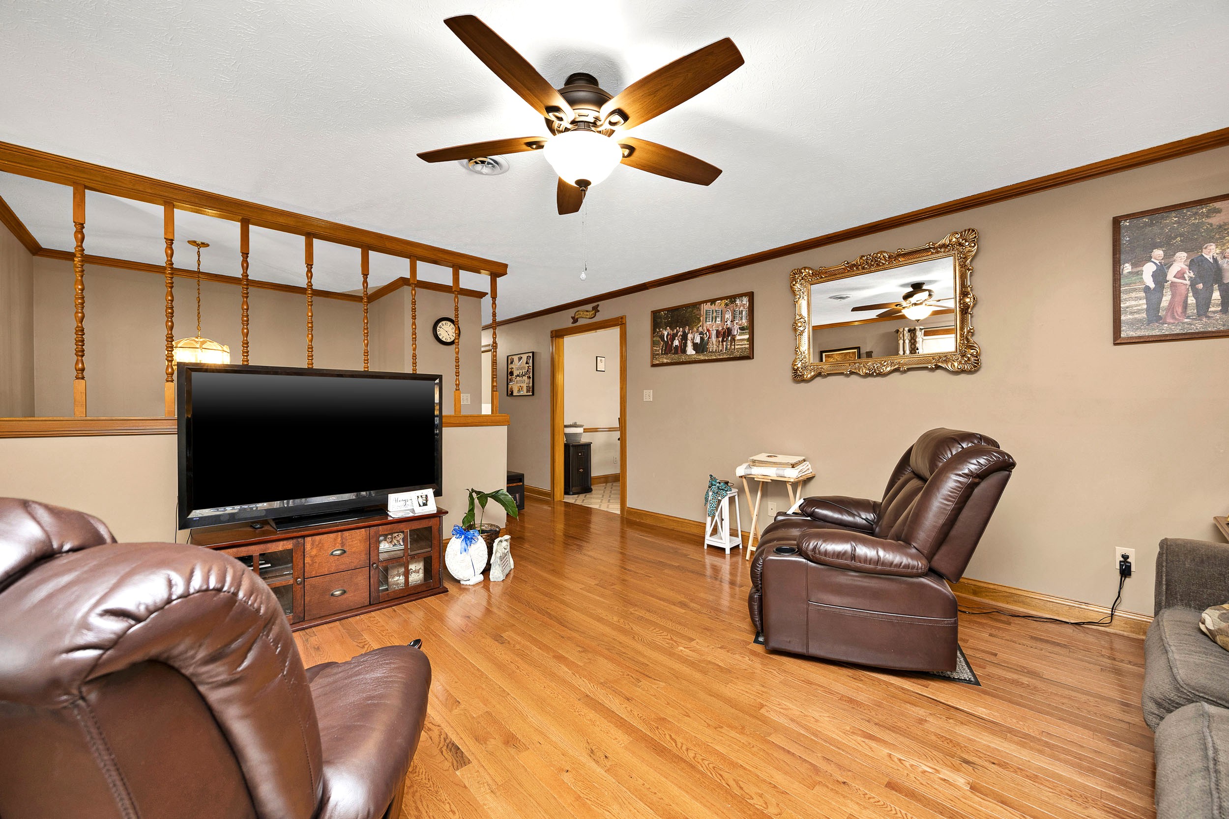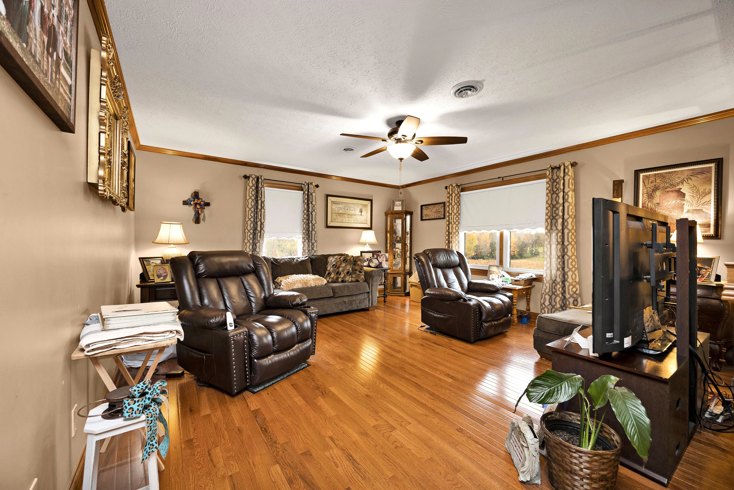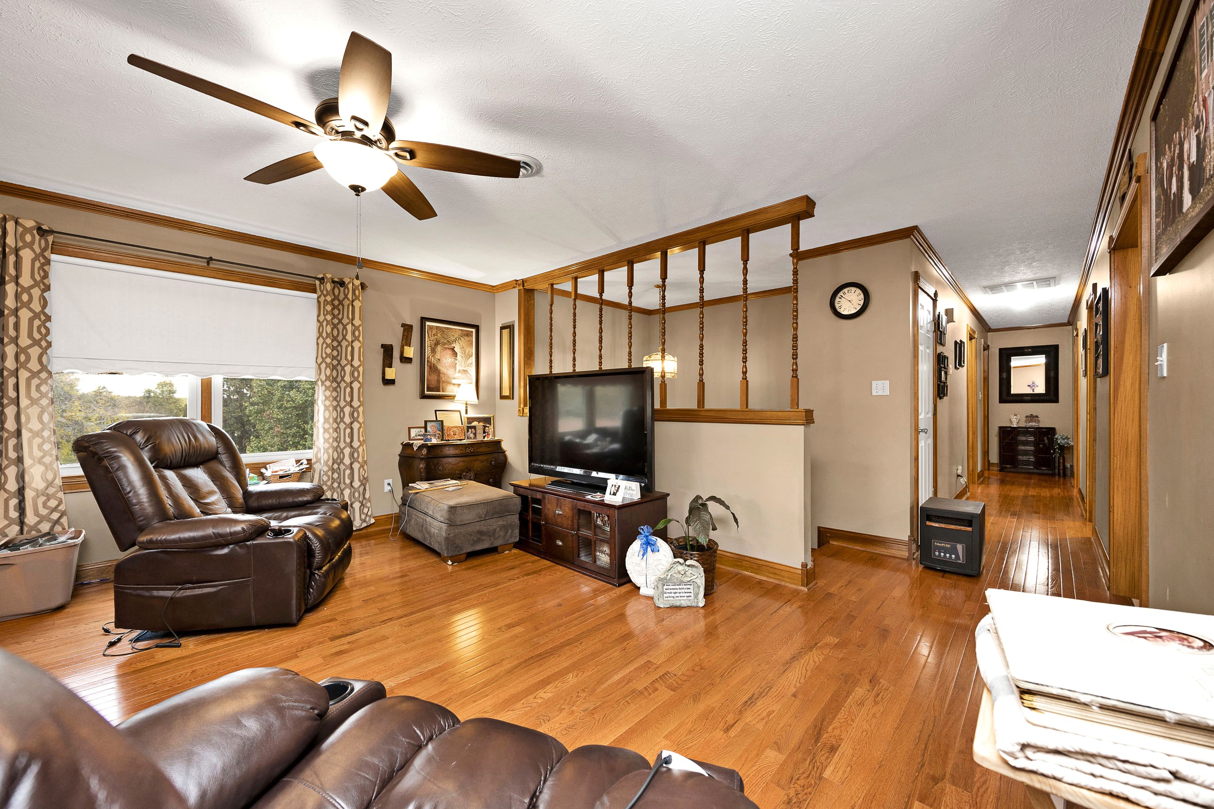 Nestled out in the beautiful countryside of central Kentucky is where you will find this charming bi-level sporting 2,728 Sq. Ft (+/-) of splendid living area ready to be enjoyed by the whole family. Kicking the tour off on the upper-level is a spacious yet cozy living room showing off immaculate trim work and a gleaming wood floor. Flowing from the living room is an adorable kitchen equipped with a lovely assortment of hearty cabinetry and a horseshoe counter that wraps into a delightful breakfast bar. Joining the party are the stainless-steel appliances (refrigerator, dishwasher, stove, and microwave) and rounding out the kitchen is an intimate dining area plus a nifty pantry closet. This level also hosts 3 large bedrooms including a spacious primary furnished with a large walk-in closet and its own ensuite bath that features a refreshing walk-in shower. Accompanying the other 2 bedrooms is another full bath highlighted by an ornate vanity and decorative tilework. Making our way down to the lower level you are greeted by a commodious yet snuggly den that offers as a fantastic rec area! This level also has 2 more generously sized bedrooms (for a total of 5) that could also be used as a home office or gym if you don’t need the extra bedrooms. Finishing up the lower-level is a sizable laundry room and yet another full bath! Then when you just want to sit back and relax… you have the rear deck to do just that as the view of the rolling countryside makes it the perfect spot to unwind and watch the world go by. Not to mention the open backyard giving a fantastic place for kids and pets to play and as an added bonus… you get a serviceable storage building too! Call BRIANNA GRIBBINS to make this house your home today!